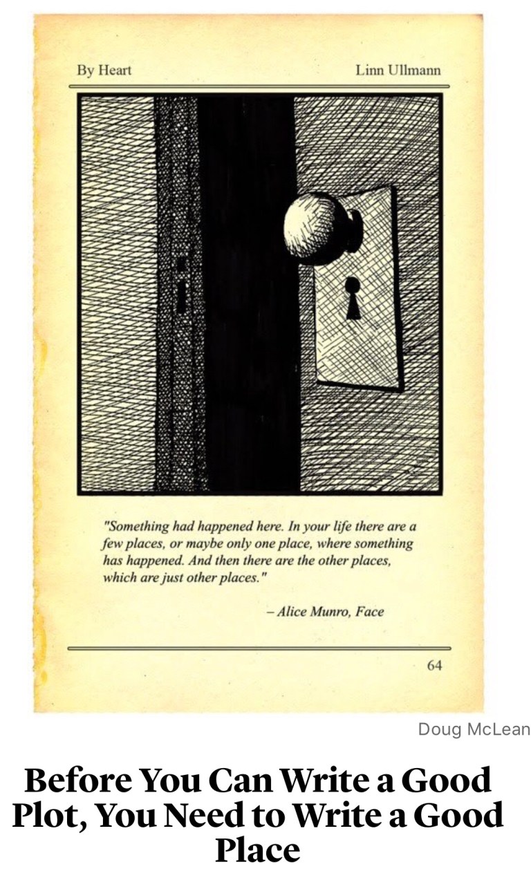 A useful interview/article in The Atlantic for writers about the importance of developing a good setting or place before developing plot: